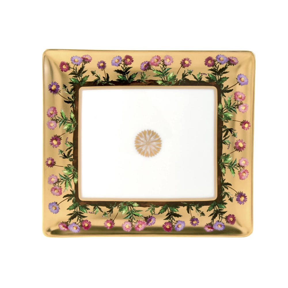 The Héloïse collection offers a floral look that is at once vibrant and timeless. Delicate, natural looking daisies sit upon a field of satiny gold. The collection references a type of French dinner service bearing accurate botanical representations that were popular in the 19th century.
