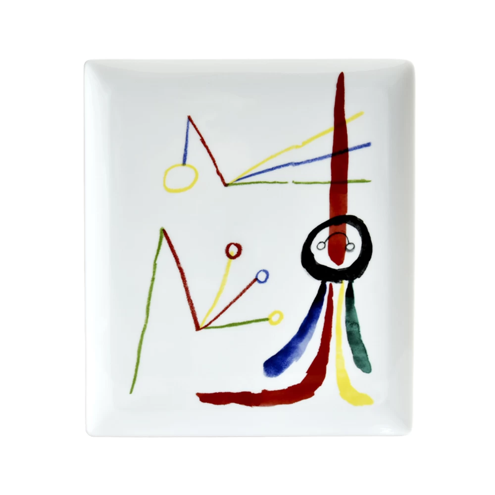 A Toute Epreuve Dinnerware comes from the book created by Joan Miró and Paul Éluard. Miró’s amorphous forms are accompanied by Éluard’s poetry to form a visual language. Miró created these surrealist works by connecting the unconscious with recognizable links to humanity and the natural world.