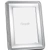 Rounded, lustrous bevelling and traditional beaded pearl design make this frame a modern classic. Frame is varnished, tarnish-free, and will not need polishing. Non-engravable.