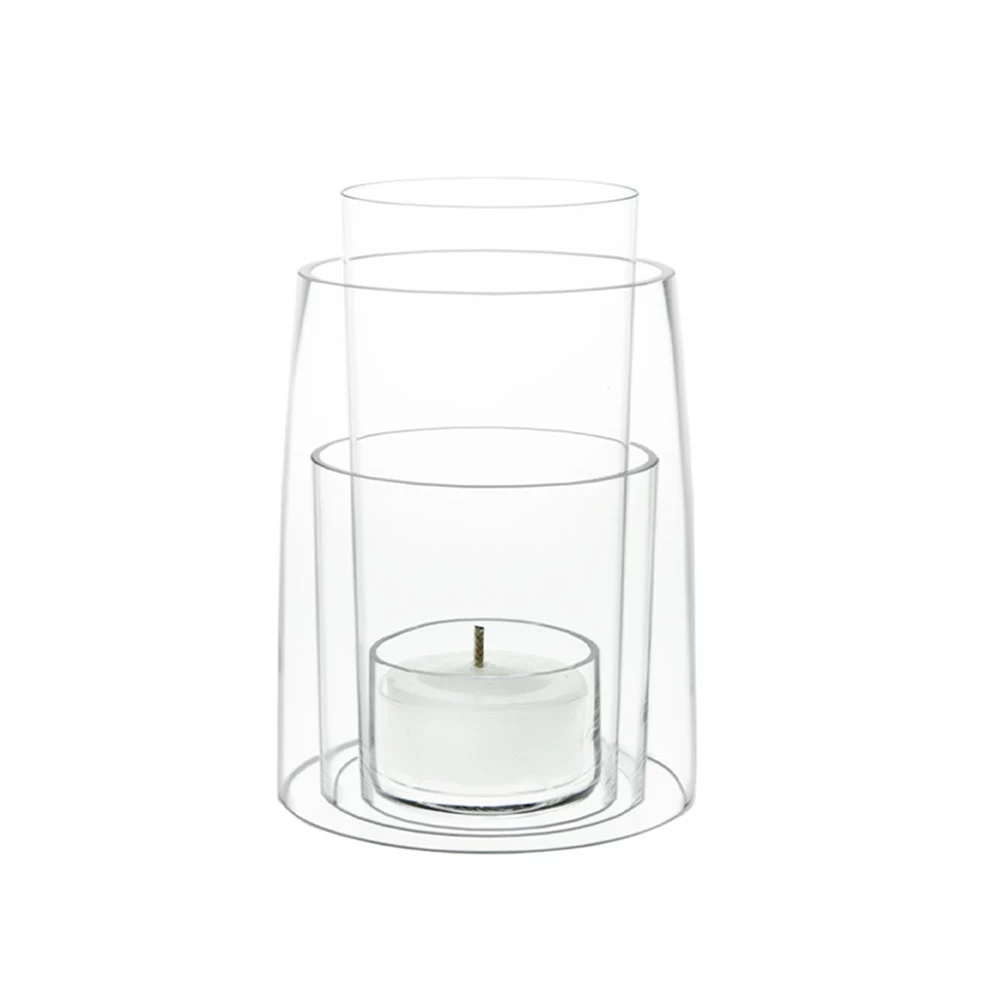 In this bold deconstruction of the hurricane candleholder, three glass sheaths nest as perfectly as petals, holding the candle’s glow within even as it shines outward. Lead-free crystal, handblown in Sweden. Hand wash only.