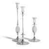 After finding a candlestick in a flea market and becoming inspired to make a classic European style more timeless, Ted Muehling created these Biedermeier pieces. This particular style features a Satin Silver finish and made even more striking by a contrasting egg of blonde domestic Ox Horn. Due to its nature, the hues may vary. Available in various finishes and three distinctive shapes. Please contact us for information and pricing.