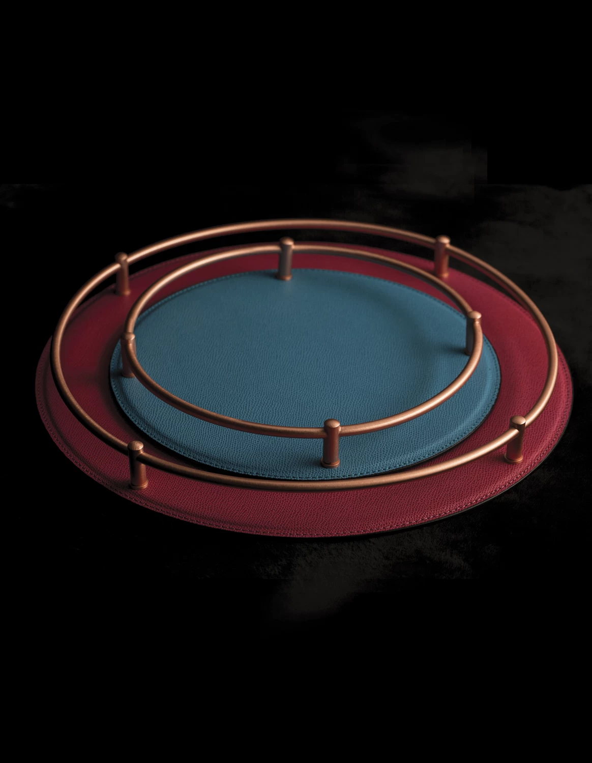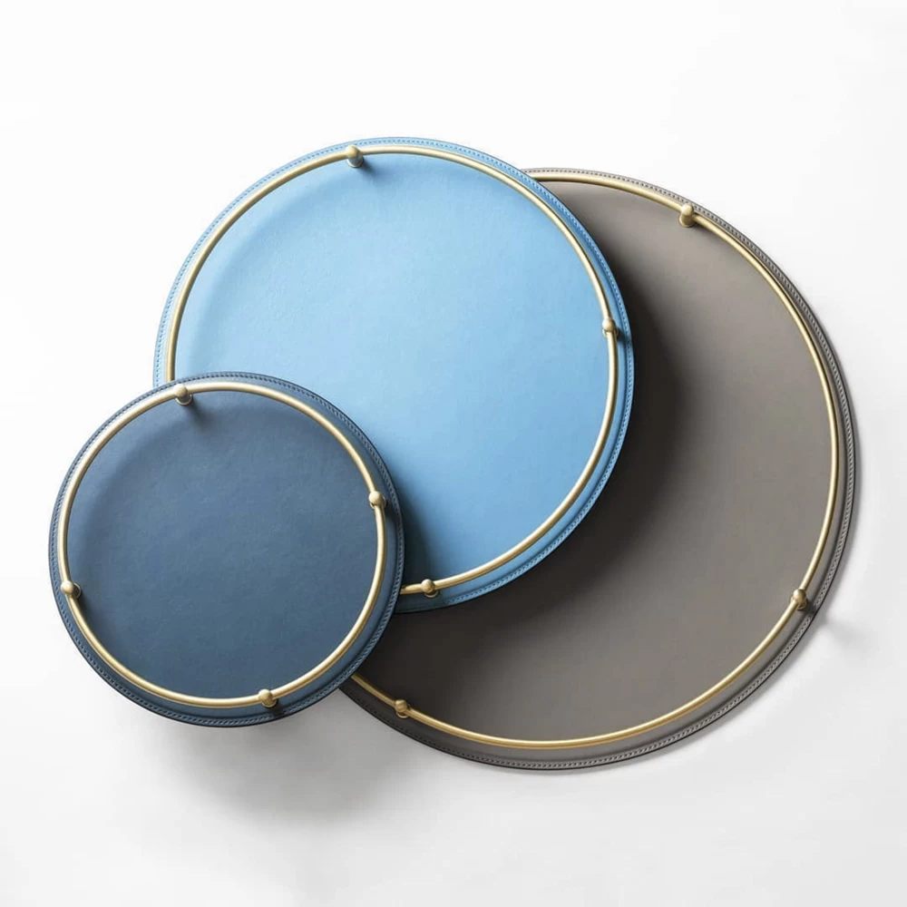The Rondo Trays, from Giobagnara, are available in three standard sizes. They can be ordered in any of Giobagnara’s 100+ leather options, or as shown, and they make a great addition to any room. Golf Leather, which is scratch and water-proof, is an especially good option for these. All Giobagnara products are hand-made to order by Italian craftsmen using 100% European leather.