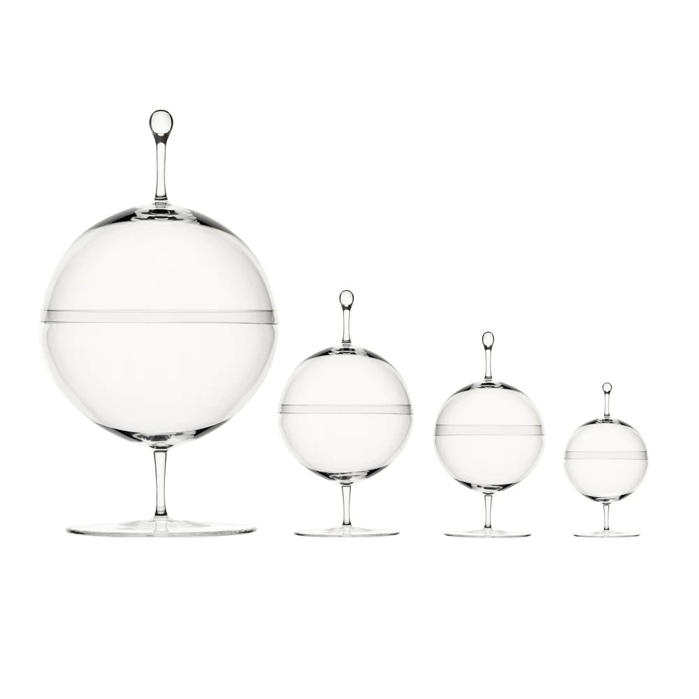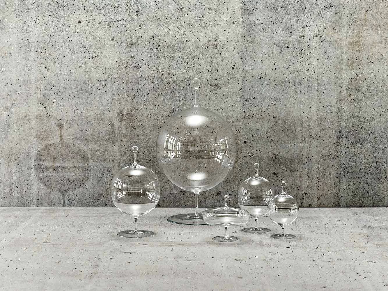 Lobmeyr’s iconic spherical candy dish epitomizes simple but striking design. Mouth-blown in the thinnest muslin glass imaginable, these dishes are both undeniably classic and provocatively forward-looking.