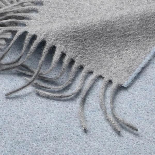 This double-layered throw in 100% Cashmere features a soft blue topside accompanied by a medium gray underside. Extremely warm and versatile in use, this lightweight throw is a perfect accent to any sofa, chair or bed. Made in Biella, Italy. All other color options featured on attached PDF.