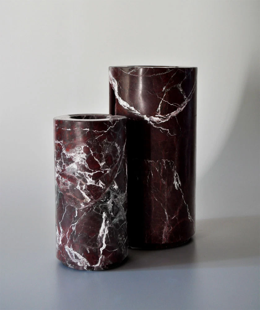 This MichaĆ«l Verheyden Buzze Vase is crafted from Rosso Lavanto Marble and comes with a glass vase insert. With a slightly curved bottom, the Buzze Vase highlights the brandās minimalist detailing and geometric forms.