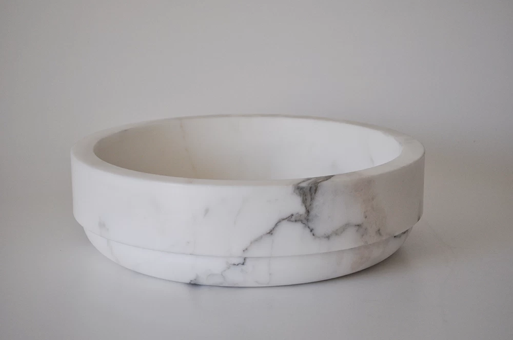The Cioto Bowl is crafted from the marble of your choice. See the attached PDF for color options, and contact us for more information about available finishes. Please note that there is a 10% upcharge for special marbles.