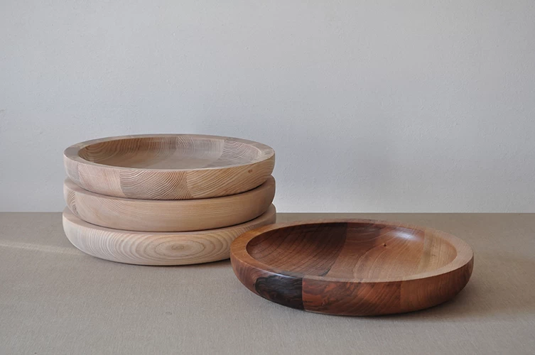 This Komm Bowl is crafted from oiled walnut.Ā With a slightly curved bottom, the Komm Bowl highlights the interplay of soft and hard edges.