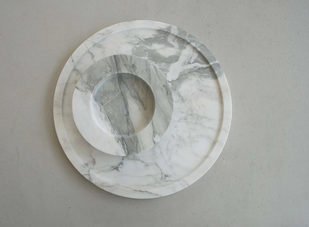The Michaƫl Verheyden Noccioline Small Plate is crafted from calcatta marble.