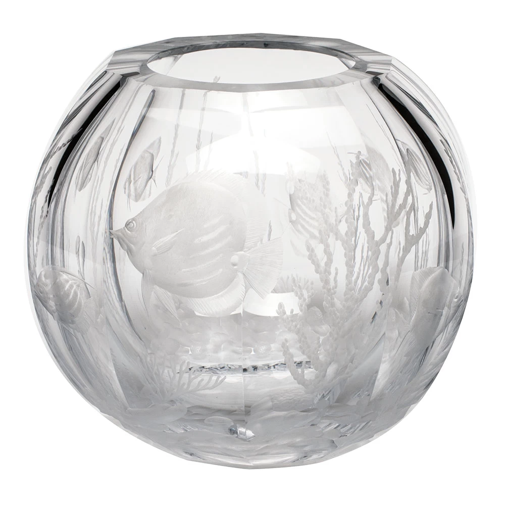 With its striking beauty and coral fish engraving, the Globe vase from Moser steals the show with its simple yet unique presence.
