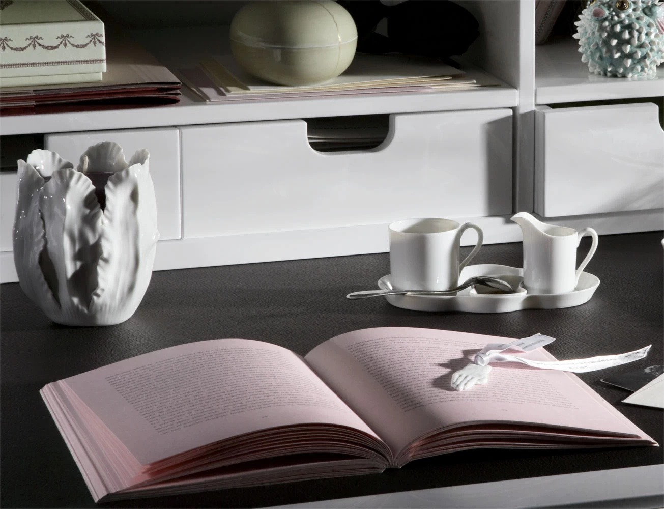 Rendered with trademark fineness and attention to detail, this porcelain hand is an elegant way to mark one’s place in an open book, and also makes an intriguing piece of desktop décor. White bisque porcelain.