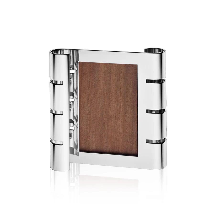 Crisp cut-outs brighten the graceful, scrolling curves of this elegant frame. Silver plate. Holds photo up to 5.9in x 3.9in.