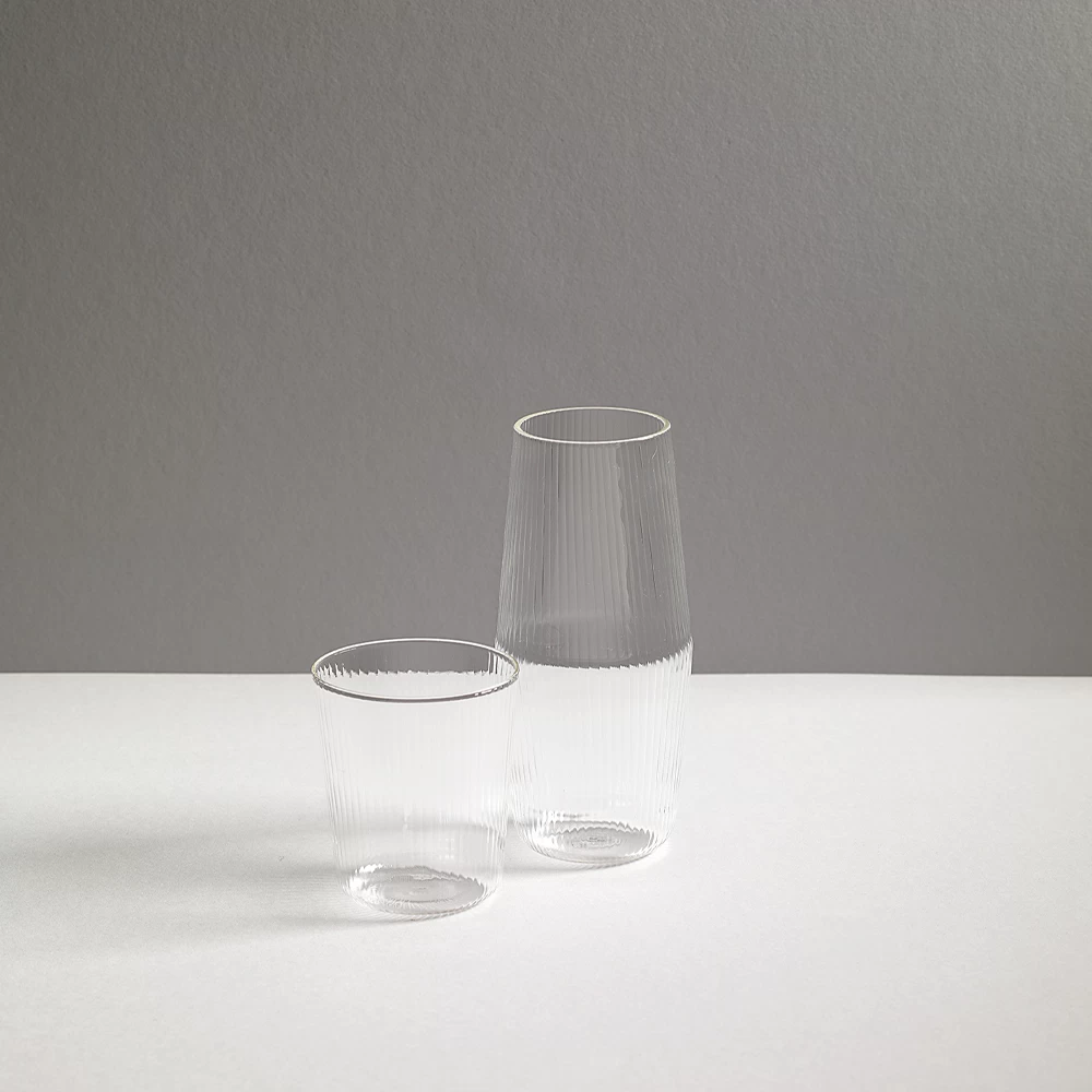 The Luisa Collection offers an intimate elegance through its clean lines and forms. This glassware features a subtle ribbed texture. Inspired by Milanese rationalist architecture. The design speaks to R+D.Labβs core principles; pure, thoughtful, functional, purposeful.