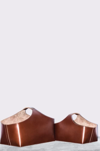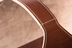 These saddle leather baskets feature a strong handle and are completely handcrafted. See attached PDF for color options.