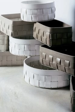 Originally produced in the 80βs, these saddle leather storage baskets come in a variety of styles and colors. Encompassing the energy of waves through their weaves these baskets are elegant as they are useful. More than just any storage item, these pieces add to any areaβs personality and are completely handcrafted. See attached PDF for color options.