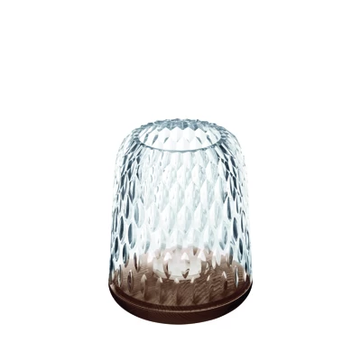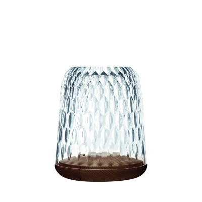 Inspired by the leaves of the Moselle Forest in France and designed by Noé Duchaufour-Lawrence the Folia collection has a contemporary tribute to nature Combining clear crystal and a matt varnished dark ash wood base this table lamp is compatible with a halogen light (included) or dimmable LED (not included).