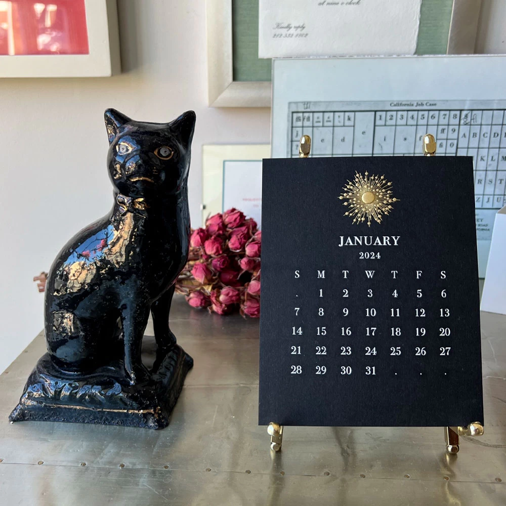 The Printery 2024 Black Limited Edition Calendar With Brass Easel