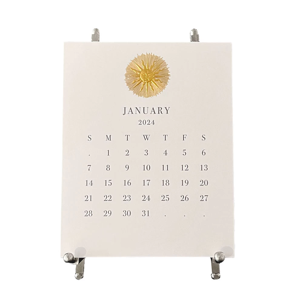 The Printery 2024 White Calendar With Chrome Easel