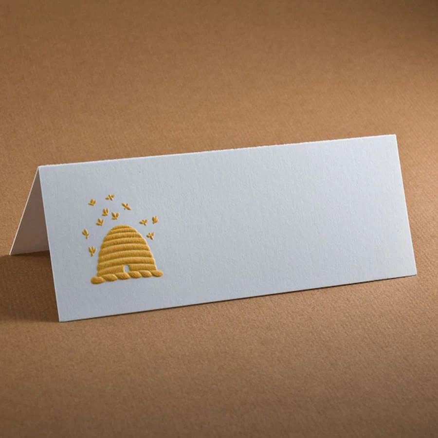 Engraved Sunflower Yellow Bee Skep on Bright White, package of 10. Impeccable craftsmanship is combined with bold colors and eye-catching design to give these classically constructed cards a contemporary energy. Photo by Paul Abbene for The Printery.