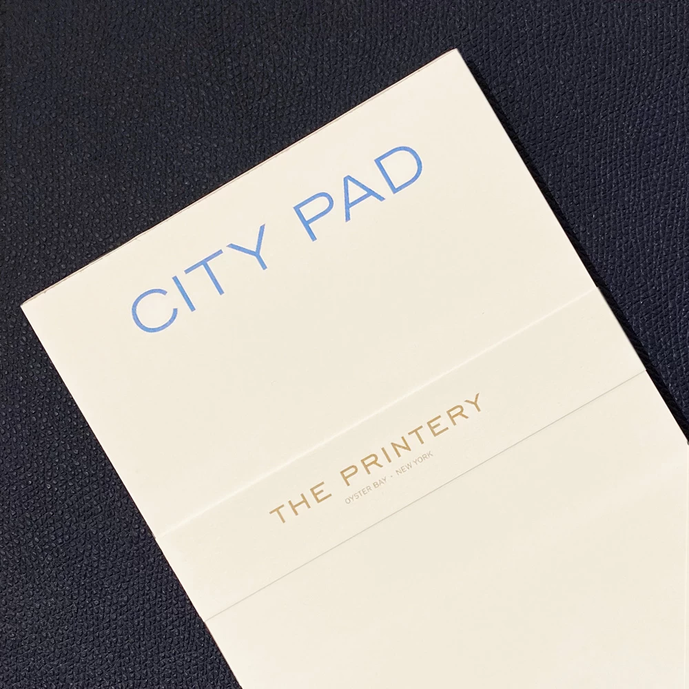 Note Pad on bone white paper with City Pad text in ness blue, flat printed. 50 sheets.
