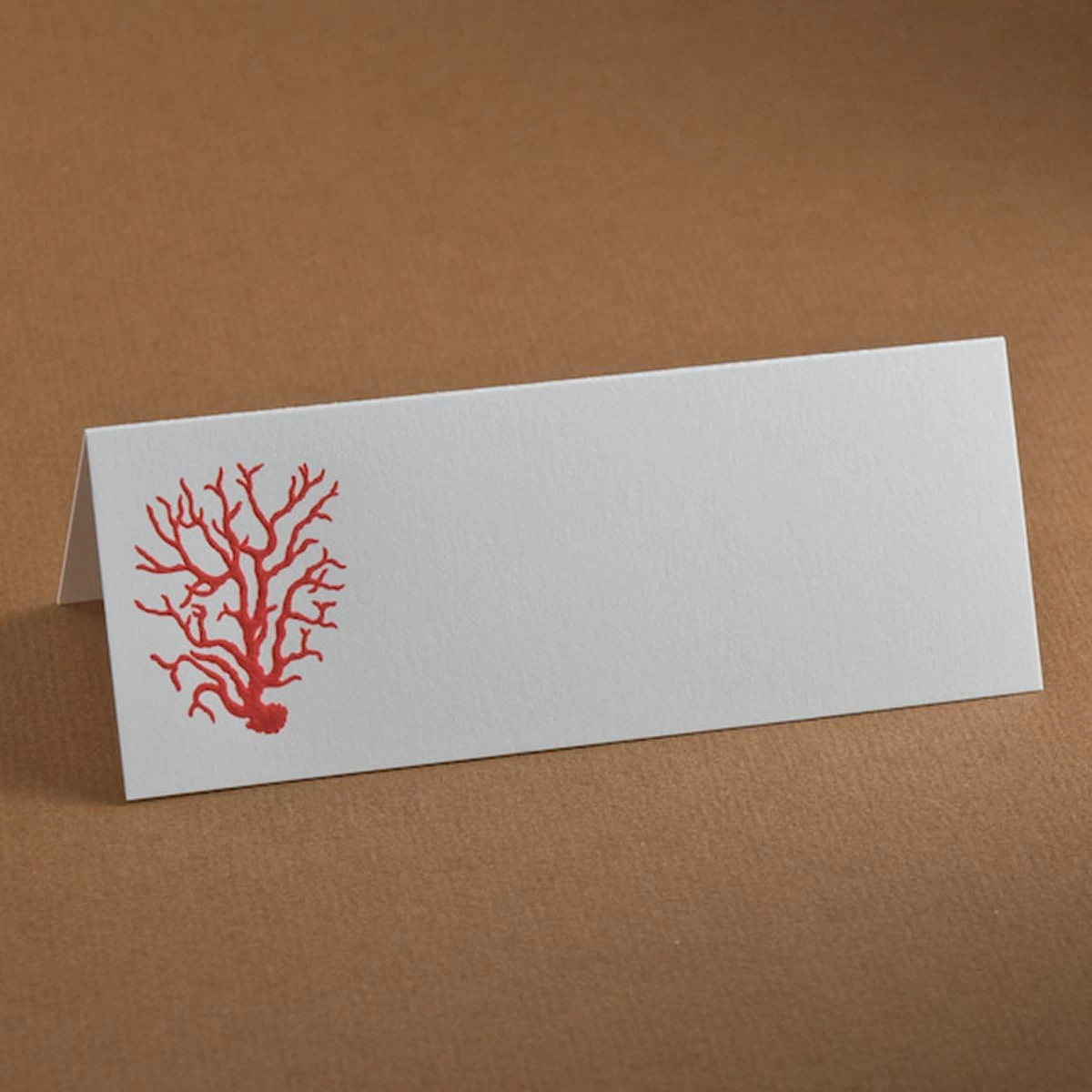 Engraved Poppy Red Coral on Bright White, package of 10. Impeccable craftsmanship is combined with bold colors and eye-catching design to give these classically constructed cards a contemporary energy. Photo by Paul Abbene for The Printery.