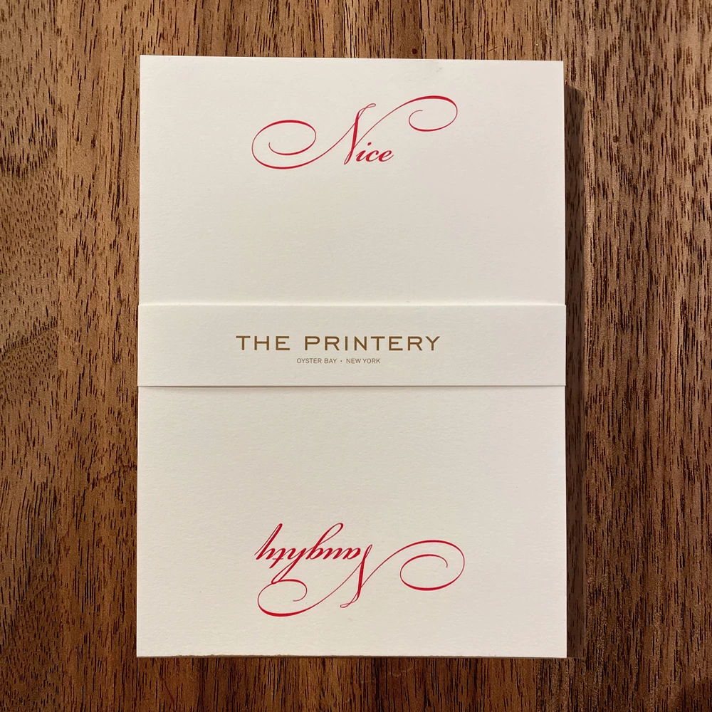 Note Pad on bone white paper with Naughty or Nice text, in red ink, flat printed. 50 sheets. Use on either side for whatever suits your mood.