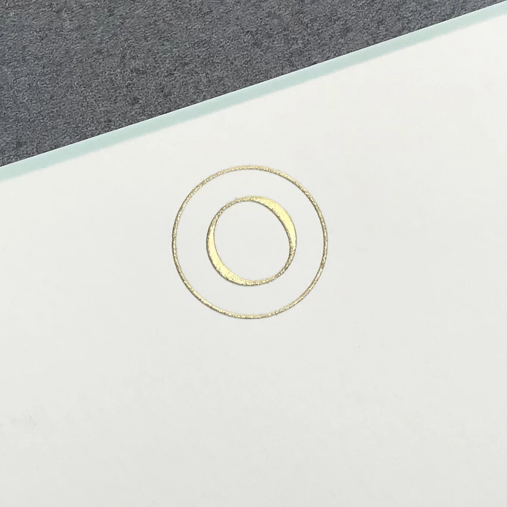 The Printery βOβ Initial Letter Note Cards are on ecru paper with an aqua border and initial letter in gold. The envelopes are lined with a shimmery gold tissue.
