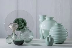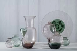 Venini Battuti Vases display organic curves and subtle texture. Made of hand-blown glass and subsequently worked on the grindstone. Using the cold-crafting technique, the surface of the glass is βsculptedβ by hand with a grinding wheel. This creates small marks on the glass surface to create subtle texture. Designed by Ludovico Diaz de Santillana and Tobia Scarpa in 1962. Numbered edition for year.