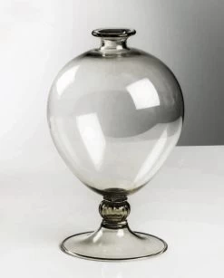 Venini Bottiglie Incise Bottles collection offer a multitude of shapes and colors. Featuring hand-blown glass bottles crafted using the Inciso technique to add a textured appearance on the outer surface of the glass and stopper. This cold-glass etching technique is performed with a hard stone grinding wheel, which is used to engrave the cold surface of the almost finished product. This leaves the bottles with an opaque, silky yet textured finish. Designed by Paolo Venini in 1956.