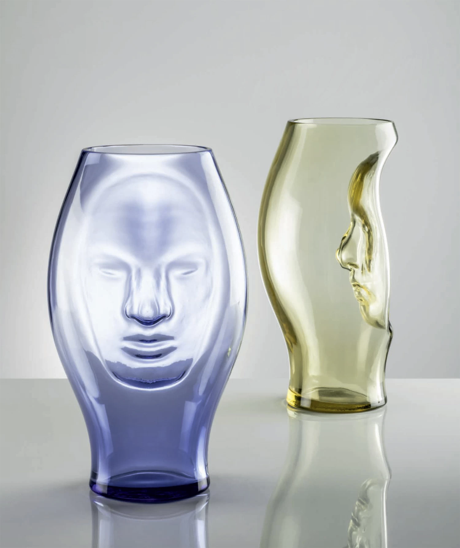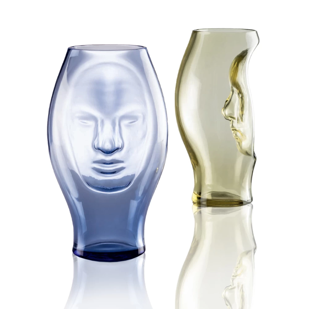 Venini Murana features an impression of the human face. Designed by Fabio Novembre for Venini in 2012. Murana takes a twist on the classic Venetian mask by turning it inward into a glass vase. Made from hand-blown glass that is worked by hand in the furnace. Murana is sure to add an eccentric touch to any space.