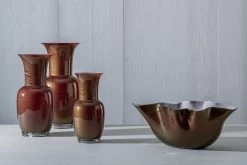 Venere Fazzoletto Vases are a new take on the Venini classic design, Fazzoletto Vases. This model is distinguished by its lower, wider opening, while keeping the wavy shape that was originally inspired by the movement of fabric. Made using the Mano Volante technique which means free hand in Italian. This indicates the swift and expert movement of the master glassmakerโs hands as he works with hot glass to create its form. Because of its hand-worked nature, every Venere Fazzoletto Vase is truly unique.